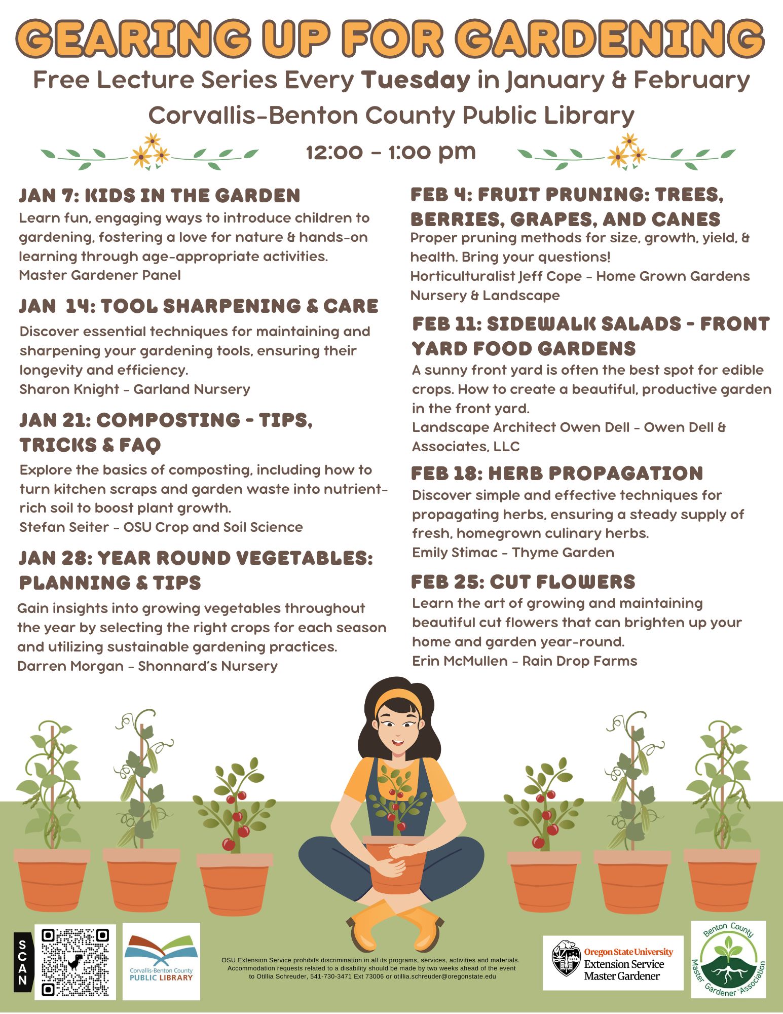 The Corvallis-Benton County Public Library in January and February will host “Gearing Up for Gardening” — a free lecture series that features tips from local experts. The first program takes place Jan. 7 and weekly topics follow until Feb. 25.