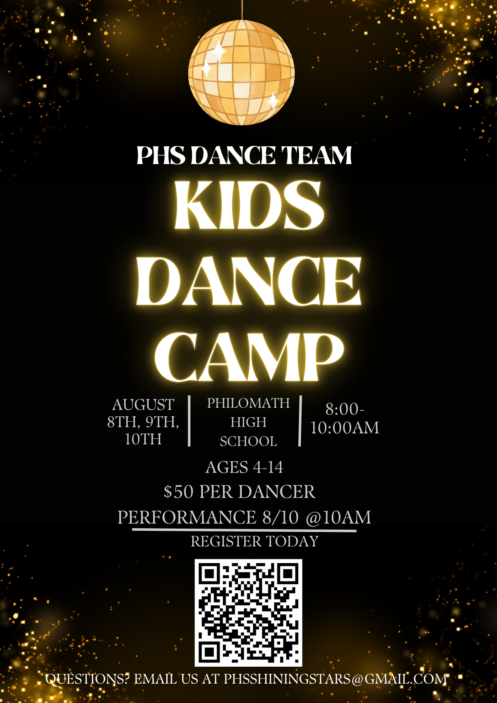 The Philomath High School’s Shining Stars dance team will host a kids dance camp on Aug. 8-10, the program announced.
